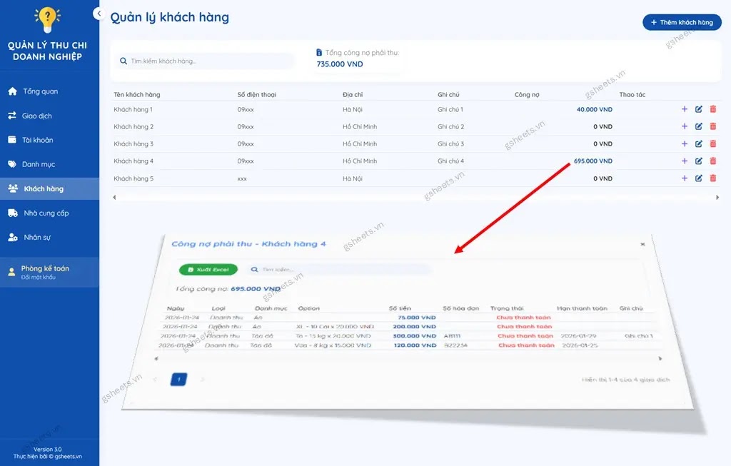 Quản lý thu chi Doanh nghiệp (v3.0)